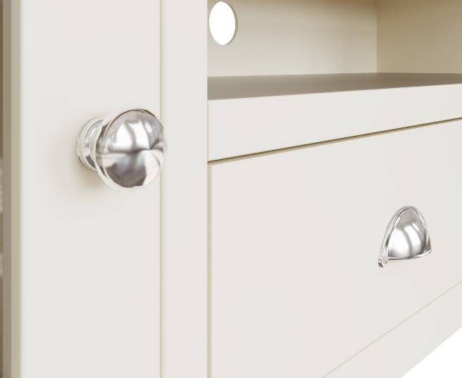 With chunky contrasting gently lime washed tops and chrome handles, this white painted collection blends classic and Contemporary influences for a style all of it’s own.