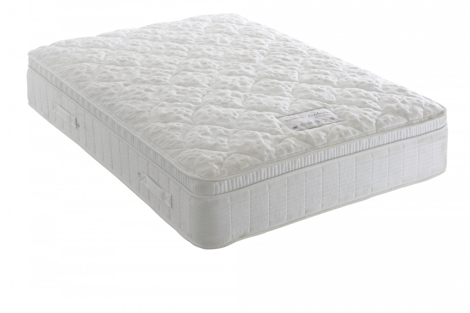 The Celebration 1800 Deluxe is finished in a deep sculptured knitted fabric cover, with a side stitched border and air vents to enable the mattress to breathe and flag stitched handles for easy movability.